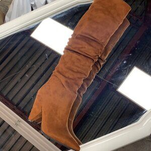 Slouch Camel Tan Brown Knee high boots Faux Suede -Brand new - 8.5