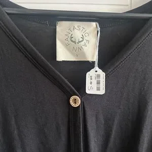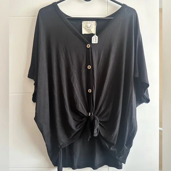 Black knotted tee with brown functional buttons. Slouchy design and super soft material.