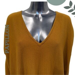 Slouchy Mustard Tunic Sweater by Papillon | Cozy & Chic V-Neck Size 8 / 10