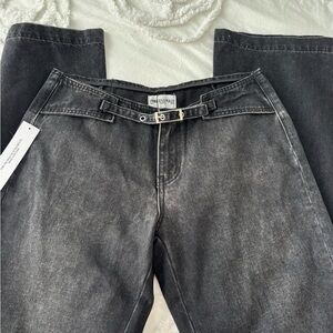 Slow Ride Mid Rise Bootleg Belted Jeans Washed Black