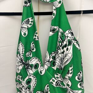 Retro, butterfly print, 70s style, vintage inspired , halter, open back, wide leg