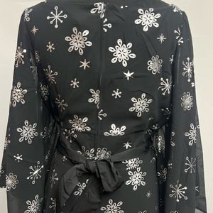 Smak Parlour Black Silver Snowflake Social Climber Caftan