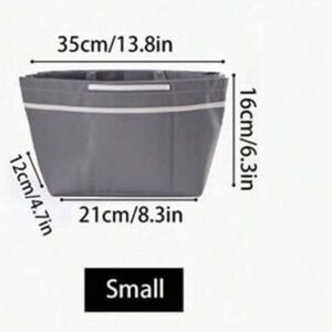 Elegant gray satin cosmetic bag with cream trim. Perfect for travel or daily use.