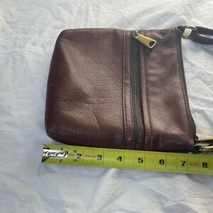 This bag is in excellent, rarely used, clean condition. The leather is thick and soft, the crossbody/shoulder strap completely adjustable, and there is one zippered pocket on the inside and one on the outside. A classic Fossil.