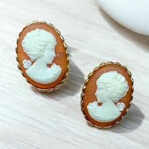 Small Cameo Pierced Earrings Costume Jewelry Gold Tone