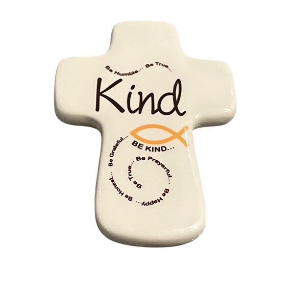 Small Ceramic Cross 'Kind" Wall Decor Jesus Fish Be Humble Be True Be Grateful