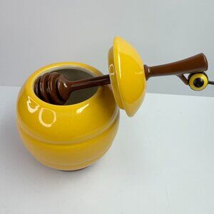 Small Ceramic Honey Pot Jar With Dipper Stick and Decorative Bee by Joie