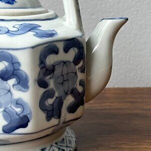 Small Chinese Teapot Blue & White Porcelain Hand Painted Marking Hieroglyphs