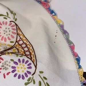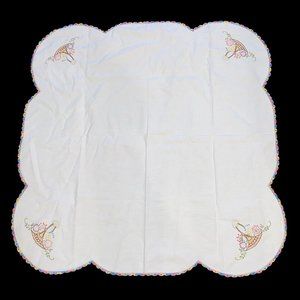 Small Cream Cotton Tablecloth or Doily Pastel Embroidery Edges Floral