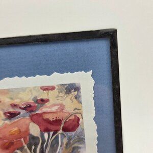 Small Framed Red Poppy Blooms Watercolor Print Floral Art