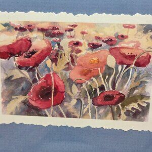 Capture the vibrant essence of nature with this exquisite watercolor print featuring red poppy blooms. The contemporary art piece, signed by the artist, offers a serene landscape that invites viewers to appreciate the delicate beauty of the natural world through a modern lens.