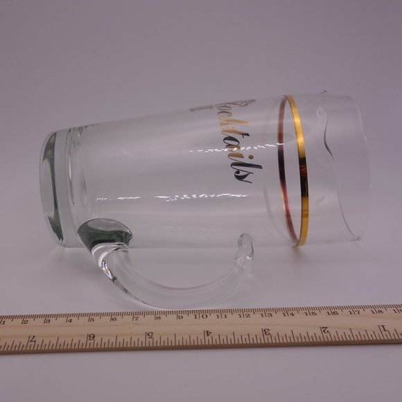 Small Glass Jug with Gold Trim and Handle Labelled "Cocktails"