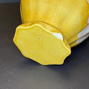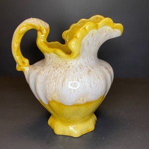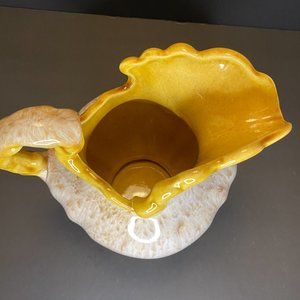 Small Glazed Ceramic Water Pitcher Gold Tone & Cream *READ*