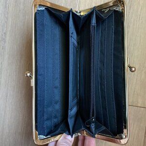 Small gold clutch, barely used. Great for a night out and you don't need to carry a big purse. Snap and zipper closing.