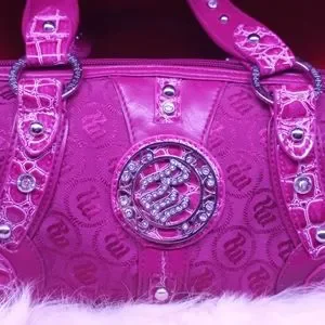 Beautiful Pink small handbag with some lovely rinstones. Like new condition. Inside sip pocket, two outside snap pockets. Silver stud accents.