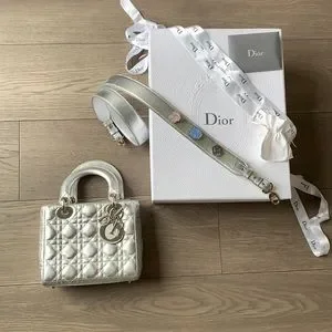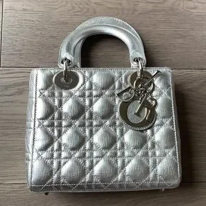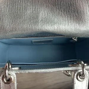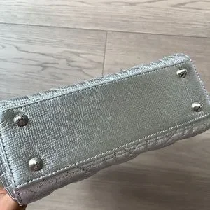 Hard to find!! Metallic grained calfskin Cannage Small My Lady Dior Silver. Item is authentic, gently used and a full set. Includes all items shown.