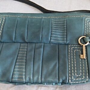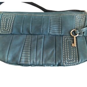 Small Leather Fossil Bag. Dark turquoise in color. In good clean pre owned condition. See photos for measurements.