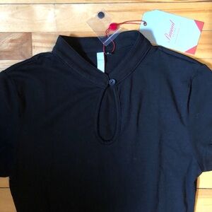NWT, unworn soft, stretchy cotton top with mandarin collar in size Small.