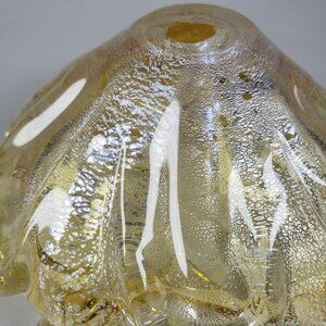 Small Ruffled 6 Lobed Golden Cased Art Glass Bowl with Silver Aventurine Flecks