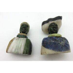 Small STONE BUST Set Colourful Hand Carved in Zimbabwe Africa 3.1" Tall
