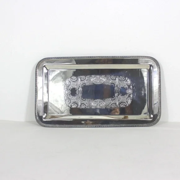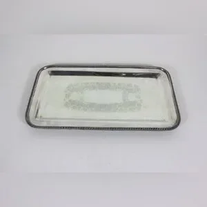 Small Silver Plated Footed Tray with Rope Edge Detail, Rectangle Rectangular