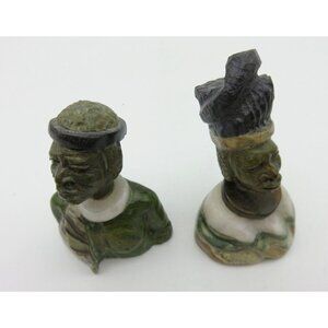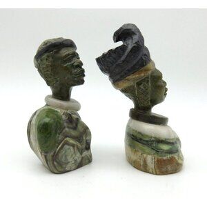 Small Stone Bust Set Colourful Hand Carved in Zimbabwe Africa 3.5" Tall