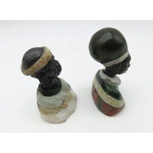 Small Stone Bust Set Colourful Hand Carved in Zimbabwe Africa 3.5" and 2.7" Tall