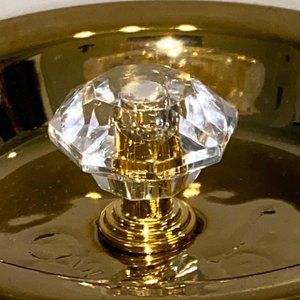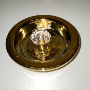Small Trinket Ring Dish Gold Tone Ceramic with Faux Diamond Knob