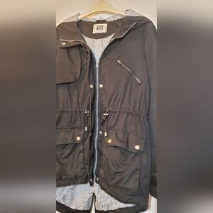 hooded jacket, casual jacket, lightweight coat, everyday outerwear, fall jacket, spring jacket, minimalist jacket, street style, trendy jacket, small womens jacket, high low jacket, black parka, primula parka, wardrobe staple, city chic, commuter jacket, weekend style, everyday essential, effortless style, modern minimalist, travel ready, streetwear vibes, versatile layering, casual chic, cool girl style, on the go, capsule wardrobe, off duty look, timeless outerwear