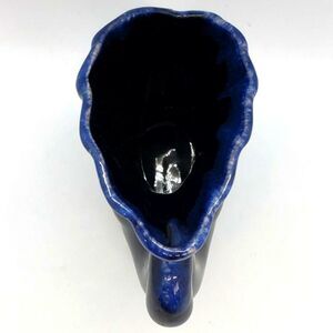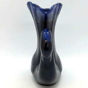Small Vintage Blue Drip Glaze Art Pottery Swan Vase. EUC with no signs of chips, cracks or scratches. Approx. size: 5.5" (w) x 2.75" (l) x 6" (h). Stunning vintage art pottery navy blue with light blue drip top. Vase is elegant with a fan-like opening. Deep blue colour is amazing and the style of the vase is highly appealing. Silk or real flowers would look beautiful in this vintage beauty.