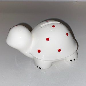 Small White Ceramic Red Polka Dot Turtle Bank 5 inches long 161 grams