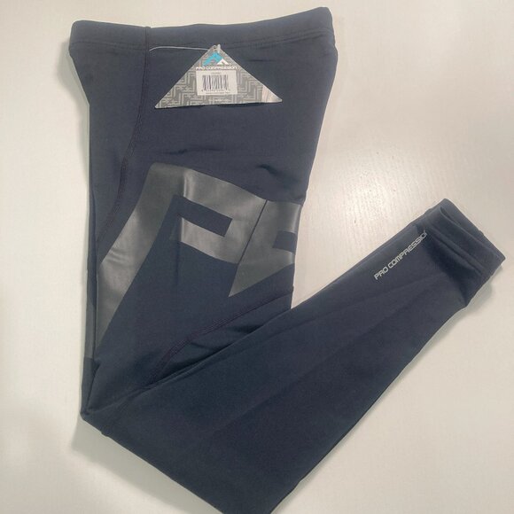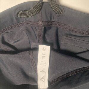 New with tags, sleek and functional black compression leggings for women. Size small, 29 inches in length. Drawstring waist.