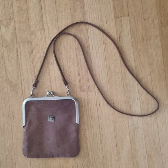 Small brown vintage bag. I cant tell if it is real leather or not...