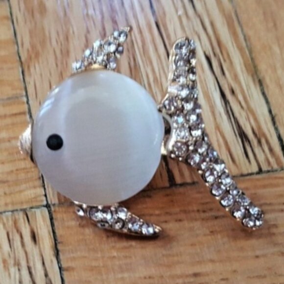 Small bling beaded rhinestone costume jewelry fish pin broach