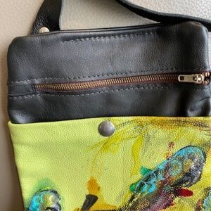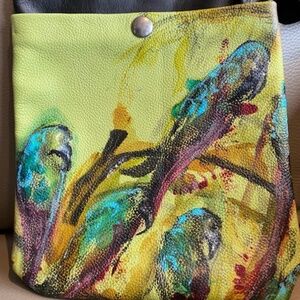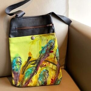 Small crossbody bag purse rare with painted parrots multicolour w/shoulder strap