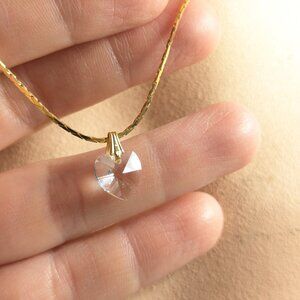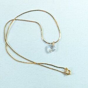 A sweet dainty crystal heart pendant on a gold toned chain. Unmarked, perfect little gift for a sweetheart, sister or daughter.