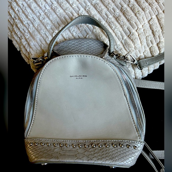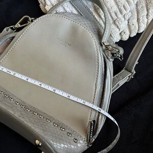 Small faux grey leather backpack 2 inside zip pockets, one zip Ajustable shoulder strap