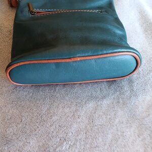 Small leather crossbody purse in rich hunter green and brown