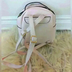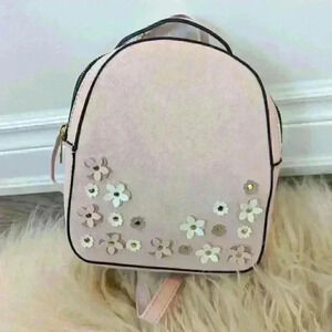 Small faux leather backpack with cutout flower details, notebook, keychain. New.