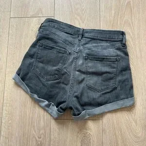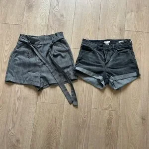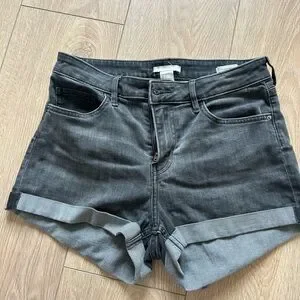 -second pair: H&M high waisted denim shorts. Colour gray. Used condition. I wore these a lot. They are comfy, fairly stretchy denim. These are size 6, but to me they fit more like a four.