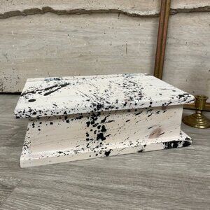 Here is a small decorative, practical, unique and versatile wooden chest. The book model is a model that can also be used, for example, as a decorative item on a wooden shelf. It can also be placed vertically.