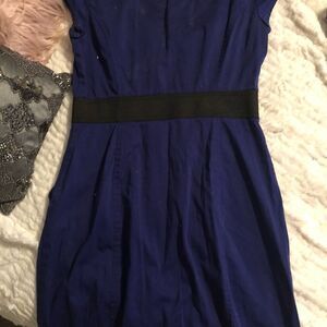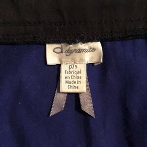Dynamite black and blue size small dress with pockets and zipper at the front. This dress is a must have for the pockets! A bit dusty from being in storage