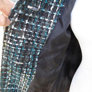 Smart JM Collection tweed jacket. Colours: black/grey/turquoise/aqua/white. Size 14, fully lined. 4 button closure. Like new