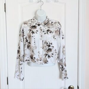 Smart SET white floral blouse crop top brown roses viscose Medium reworked