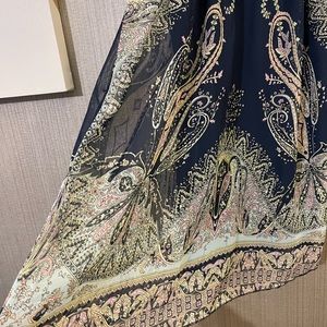 Beautiful print and neckline detailing Outer - sheer Lined Ptp 19 Length 33”