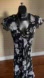 Chic floral pattern black and white dress. Features short sleeves and a flowing design.