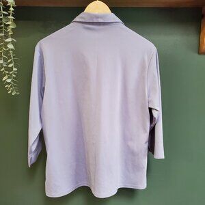 Details: 3/4 Length Sleeves, Button Up, Slit at Sides on Bottom
