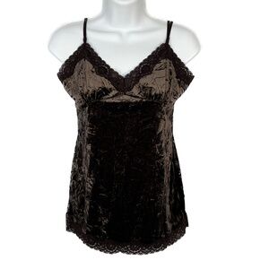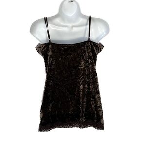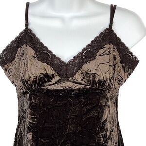 Smart Set Crushed Velvet Lace Cami Top Fairy Grunge Romantic Shiny Brown Size M