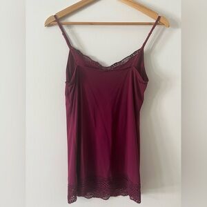 Chic deep red cami with delicate lace detail. Ideal for versatile styling.