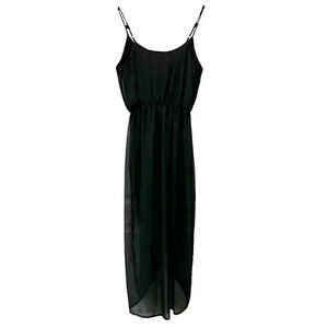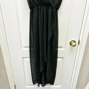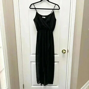 Smart Set Midi Maxi Dress Black Sheer Flowy High Low Wrap Front Asymmetric XS